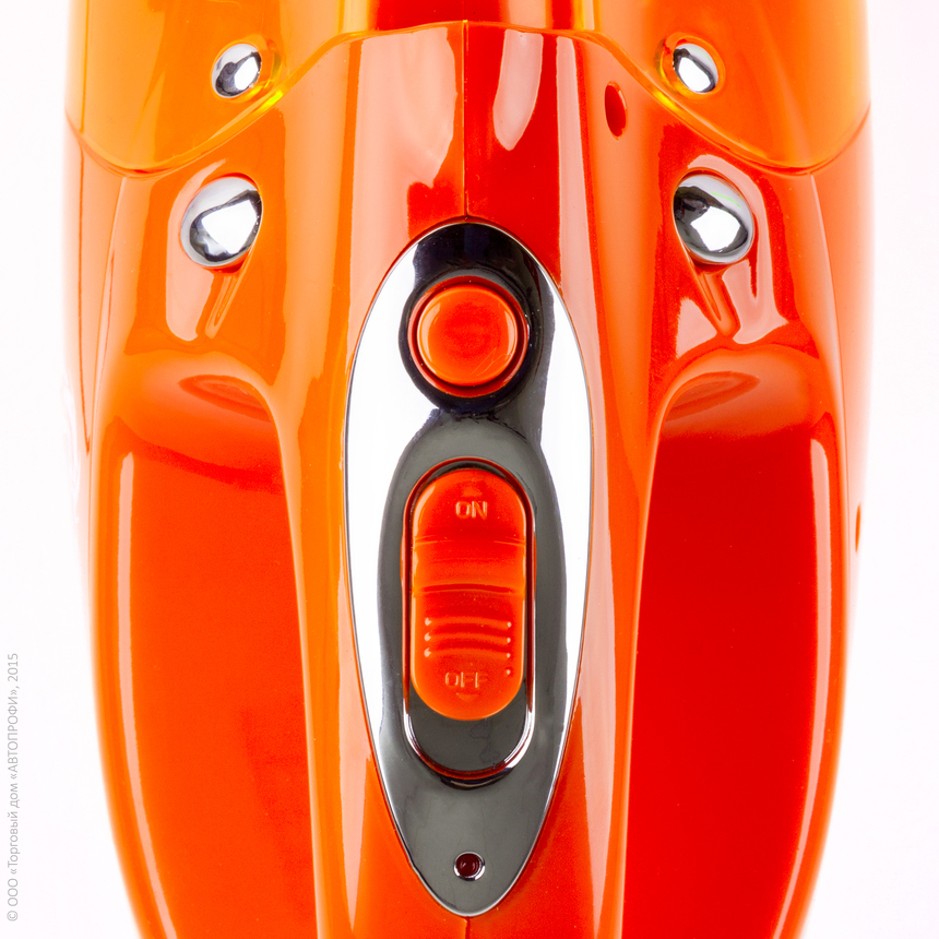 Питание пылесоса осуществляется от прикуривателя автомобиля. В корпус изделия встроен удобный светодиодный фонарь. В комплекте также поставляются гибкий шланг и 3 насадки, среди которых – эффективная турбощётка с электромотором, развивающая до 11300 оборотов в минуту.