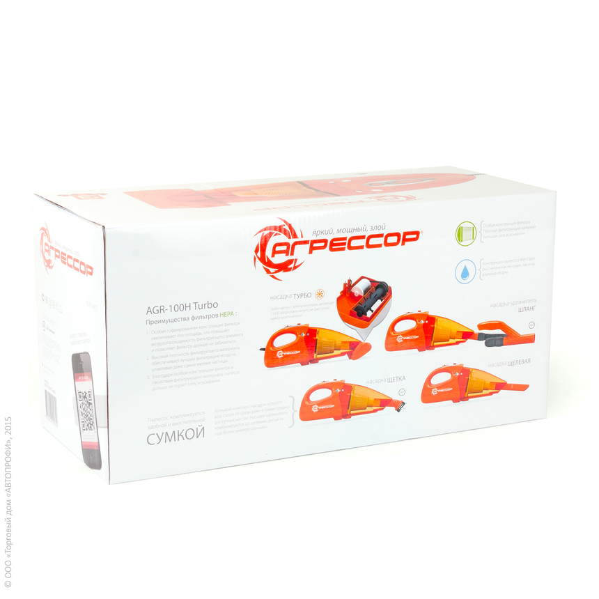 Инновационный автомобильный пылесос AGR-100H Turbo из серии «Агрессор» выполнен в ярком и эргономичном дизайне. Прогрессивная конструкция пылесоса позволяет не только качественно очищать поверхность от грязи и пыли, но при необходимости но при необходимости собирать до 200 миллилитров негорючей жидкости.